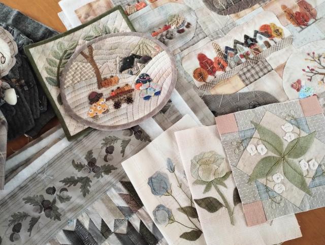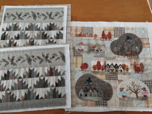 今月は季節ものをがんばりました。 ハロウィンのタペストリーやどんぐりのバッグのピースワークは結構時間がかかりました。 その他、STUDIO QUILTのマンスリーのパターンのアップリケ終了。 課題のドールは完成し、バッグはもうひと頑張り。 五戸先生のグループキルトのミニキルトは完成したので、青森に送って一安心です! スーちゃんのハロウィンとどんぐりのバッグは、これからキルティングを進めようと思います。 Happy Halloween🎃 タグ 手芸 パッチワーク アップリケ まざーず・どりー夢 タペストリー STUDIO QUILT マンスリー2025 キルトパーティ バッグ 小物 キルトバーム