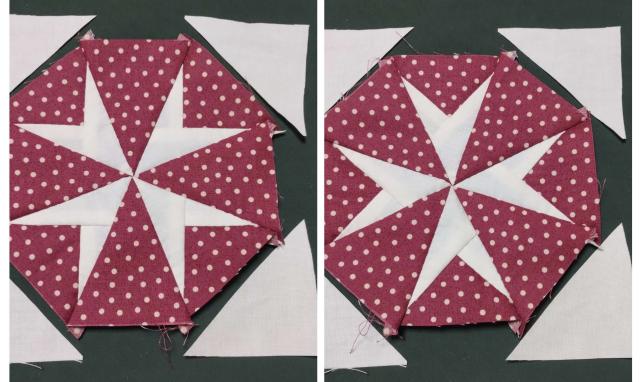 久しぶりのDear Jane キルトです。 F11は、作業手順を変えて縫ったらスムーズにできましたヽ(=´▽`=)ノ 以前は、角の小さな四角のピースにアップリケしようとして断念した記憶が…(^^ゞ 今回は、カットする前にまとめてアップリケしてから小さな四角に切りました。 白の扇形のアップリケも、全体のピースワークが終わってから。 F12は正八角形なので、どちらの向きでも縫えるパターンですね。 F13は、小鳥や蝶の柄を切り抜いてアップリケしました。 使った布は、昔買ったチェックとこうの早苗さんの布とmodaの布です。 これでFの段の13枚ができました。 タグ 手芸 パッチワーク アップリケ Dear Jane Quilt