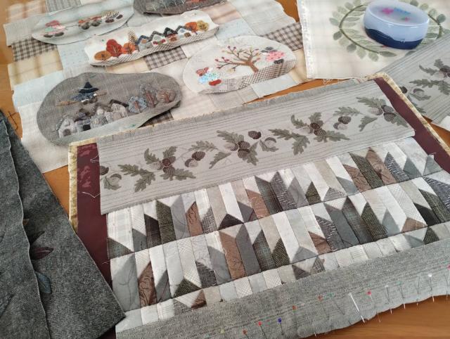 途中経過 今月の途中経過。 渋めバッグは小さめですが、なかなか手がかかります。 五戸先生の宿題ミニキルトはトップができて、これからキルティングします。 スーちゃんのハロウィンは、土台の四角つなぎが終わり、パターンを置いてみました。 これをアップリケして、空いているところに更にアップリケを足します。 どんぐりのバッグは、つながってきました。 ピースワークの下の部分はプリント布の柄を活かすデザインですが、底につながる部分なので、手持ちの先染布に変更してm(_ _)m 丈夫さを出します。 今朝、題名のない音楽会で、ラフマニノフのヴォカリーズを演奏していました。 大好きな曲で、昔買った楽譜を取り出し、少し弾いてみましたが、小指が痛くて弾けない(T_T) もう、ピアノを弾くのは無理かな…。 今日は野球を観ながら続きを縫います🪡 タグ 手芸 パッチワーク アップリケ まざーず・どりー夢 キルトパーティ