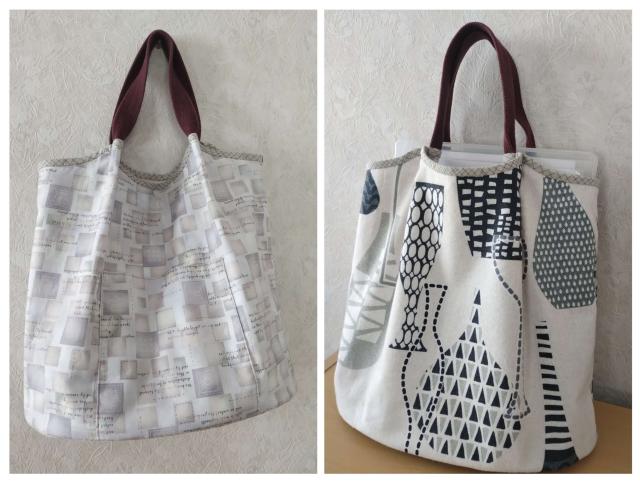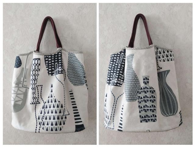 リバーシブルバッグができました。 すてきにハンドメイド2015年2月号のテキスト企画、斉藤謠子の毎日使える布バッグ「リバーシブルバッグ」を参照しました。 大柄プリント布が映える1枚布で作るバッグということで、この布にピッタリ! 底は楕円形で、表布と中底の裏に厚手接着芯を貼ったので、たくさん物を入れても形がしっかりしています。 裏布は南久美子さんデザインの布を使いました。 手芸店に勤務していた当時、入荷してすぐ買った布です。 そう言えば、持ち手テープも新入荷のものでした。 ポケットも付けました。 A4サイズのファイルが縦にすっぽり収まります。 持ち手の付け方でタックが入り、かわいらしくなりました。 軽い布バッグ、これからどんどん使います(^^) デザイン 斉藤謠子さん サイズ 約32×32×16cm タグ 手芸 斉藤謠子 バッグ 南久美子